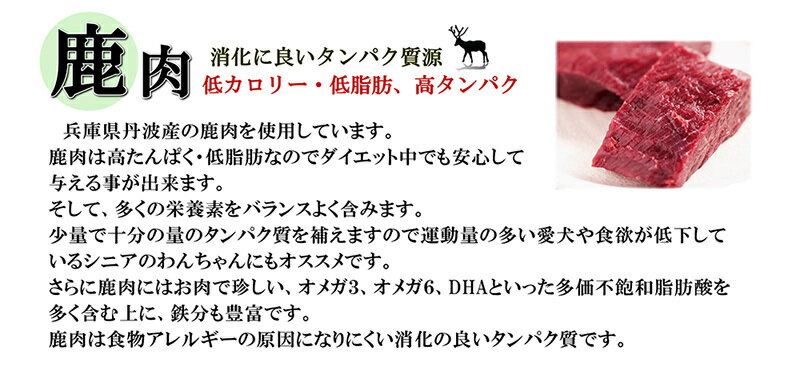 商品情報 サイズ ハーフサイズ 長さ10cm×直径5cm内容量 130g/131kcal 原材料 鹿肉15.5g、かぼちゃ17g、白菜12.5g、さつまいも7.5g、ごま1.5g、しじみ汁煮ごはん 245g、海苔2g賞味期限 冷凍保存2か月間、解凍後は冷蔵保存で2日以内にお召し上がり下さい。